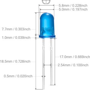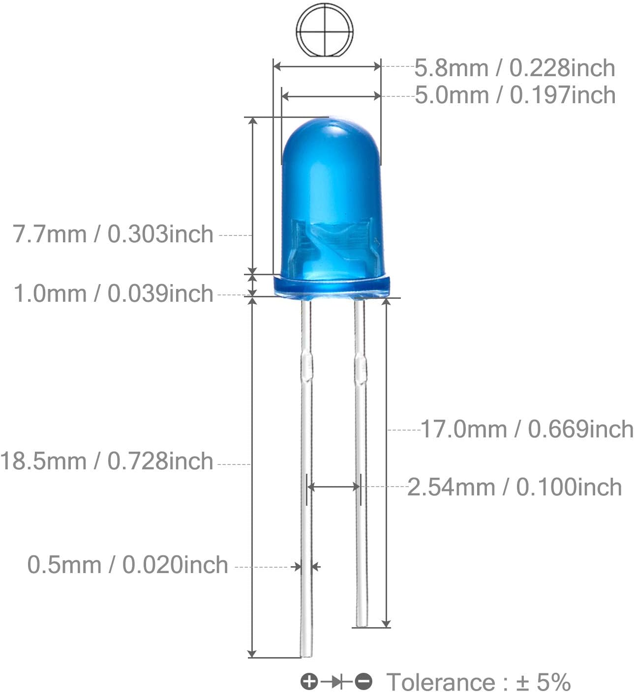 5mm Blue Diffused LED Diode Lights,blue,green,red,white (Colored Lens Round DC 3V 20mA) Lighting Bulb Lamps Electronics Components Indicator Light Emitting Diodes